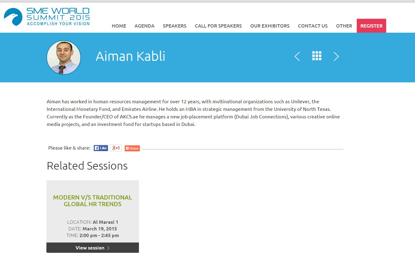 Session Speaker at SME World Summit in Dubai (Mar 2015)